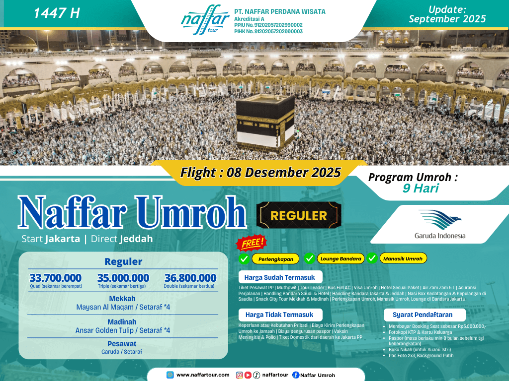 NAFFAR UMROH REGULER (08 - 16 DESEMBER 2025)